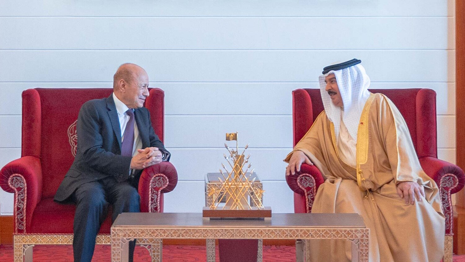 جاء ذلك خلال لقاء الملك البحريني، رئيس مجلس القيادة الرئاسي اليمني رشاد العليمي، الذي يزور المنامة حالياً.