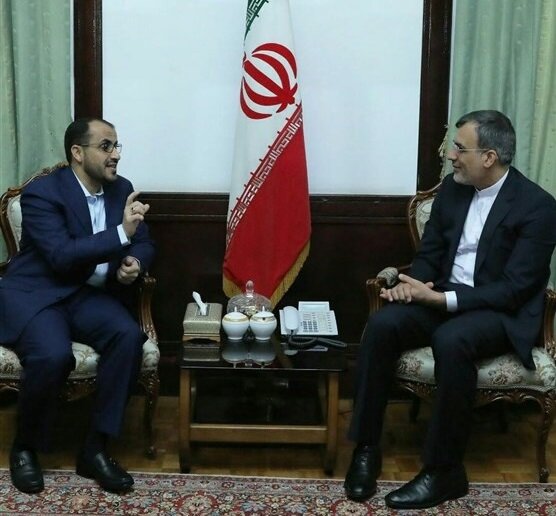 بحث الناطق الرسمي باسم جماعة الحوثيين (أنصار الله) في اليمن، محمد عبدالسلام، مع كبير مساعدي وزير الخارجية الايراني للشؤون السياسية حسين جابري انصاري، اليوم الاثنين في طهران، مستجدات مباحثات السلام اليمنية، وفقاً لما أوردته وكالة "تسنيم" الإيرانية للأنباء.
