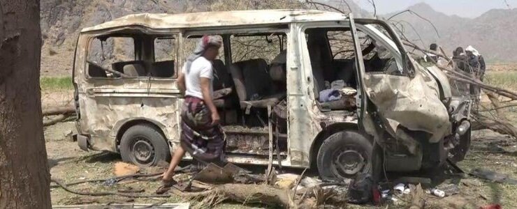 وكانت جماعة الحوثيين (أنصار الله)، قالت أمس الأول السبت، إن 19 نازحاً قُتلوا وأصيب 30 آخرين عندما استهدفت غارتان لطيران التحالف، حافلتين كانتا تقلان أسراً نازحة في طريق عام بمنطقة المصبرية في مديرية جبل رأس التابعة لمحافظة الحديدة غربي اليمن.