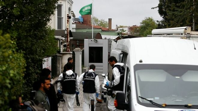 وفي وقت سابق، أمضى محققون أتراك و سعوديون قرابة تسع ساعات في مقر إقامة القنصل السعودي محمد العتيبي، وفتش الفريق التركي السطح والمرأب وأطلقوا طائرة مسيرة حلقت فوق المنطقة.