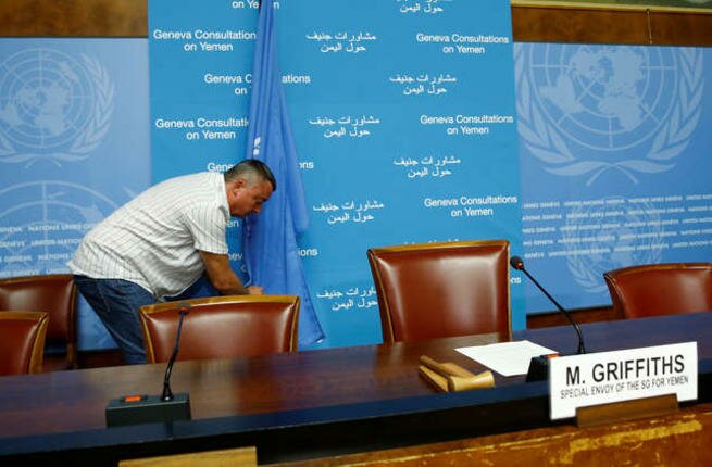 وانهارت في الثامن من سبتمبر الماضي، مشاورات سلام بين الأطراف اليمنية المتناحرة قبل بدئها في جنيف برعاية الأمم المتحدة بعدما امتنع وفد جماعة الحوثيين عن الحضور ورفضه مغادرة صنعاء على متن طائرة الأمم المتحدة، وطلب طائرة عُمانية خاصة لتقله إلى مقر انعقاد المشاورات وتنقل معه إلى مسقط عدداً من الجرحى والعالقين، وتعود بهم إلى صنعاء، وهو ما رفضته الحكومة اليمنية "الشرعية" المعترف بها دولياً والتحالف العربي الداعم لها بقيادة السعودية، مبررين ذلك بأن الحوثيين يريدون نقل جرحى وعالقين إيرانيين وآخرين من حزب الله اللبناني يقاتلون إلى جانبهم.