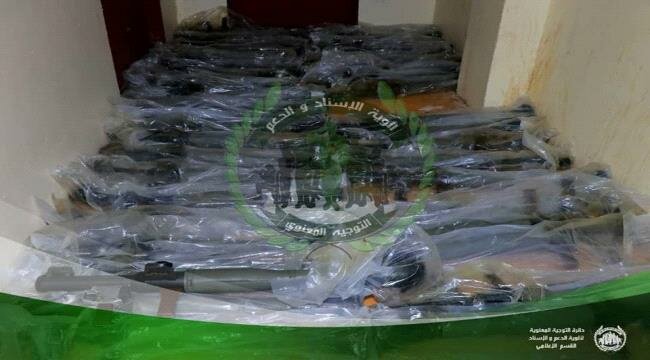 وذكر مصدر مسؤول في عمليات قوات "الحزام الأمني" في بيان صحفي، أن قوات القطاع الشرقي لعدن ضبطت 178 قطعة بندقية، و48 قاذف آر بي جي، و45 نواظير قاذف آر بي جي، كان جميعها على متن شاحنة نوع "دينا جانبو".