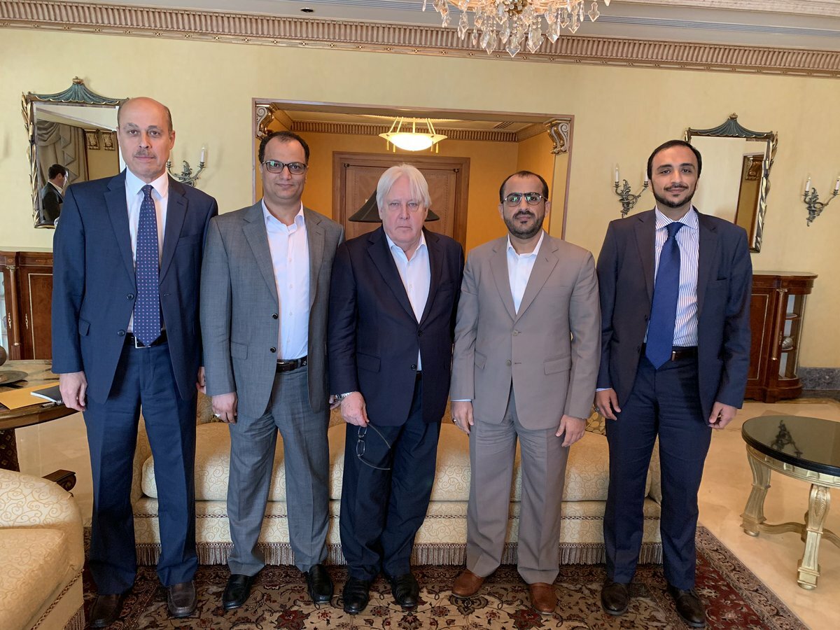 ناقش المبعوث الخاص لأمين عام الأمم المتحدة إلى اليمن، مارتن غريفيث، مع رئيس وفد جماعة الحوثيين المفاوض محمد عبدالسلام، اليوم الأحد في العاصمة العمانية مسقط، مسار تنفيذ اتفاق ستوكهولم الذي أبرمه طرفا الصراع في اليمن خلال ديسمبر الماضي في مشاورات احتضنتها السويد.