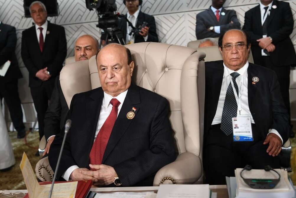 وزعم الرئيس اليمني في كلمته أمام القادة العرب، أن الحكومة الشرعية تواصل تنفيذ مهامها من مدينة عدن جنوبي البلاد، التي تتخذها هذه حكومته عاصمة مؤقتة للبلاد. وقال إن ذلك يتم "رغم استيلاء الميليشيات الحوثية على كافة الإيرادات والمداخيل، وتوفير المرتبات لكافة موظفي الدولة بما في ذلك نسبة كبيرة من الموظفين في العاصمة صنعاء والمناطق التي لا تزال ترزح تحت هيمنة ونفوذ هذه العصابات ورغم رفضها تحويل الإيرادات إلى البنك المركزي في عدن واستيلائها على إيرادات الدولة لصالح مشروعها الدموي".