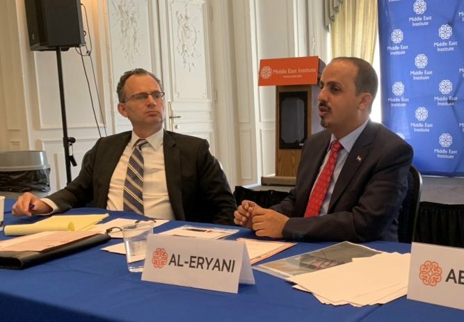 وأضاف الإرياني في لقاء بمعهد الشرق الأوسط في واشنطن أن صمت المجتمع الدولي على التحديات التي تواجه العاملين الدوليين في مناطق سيطرة جماعة الحوثيين المدعومة من إيران، يهدد حيادية ومهنية هؤلاء العاملين وينسف جهود الأمم المتحدة في تحقيق السلام وتحسين الأوضاع الإنسانية "الناتجة عن الإنقلاب".