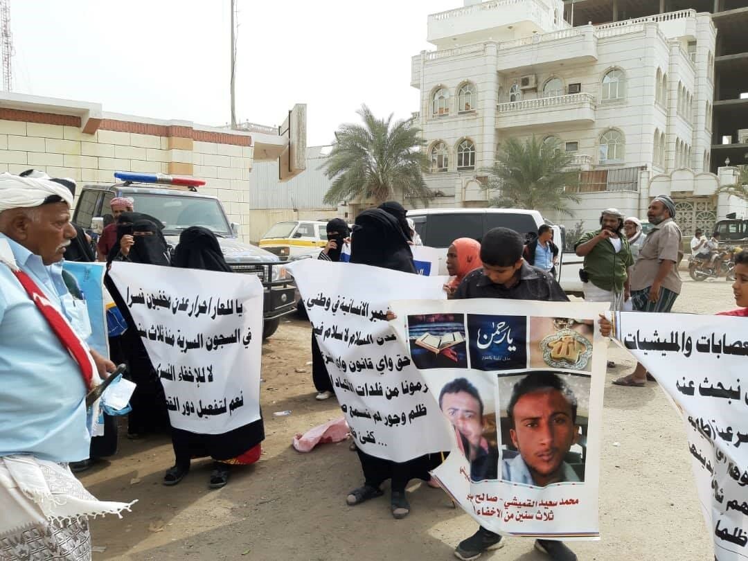 وشهدت مدينة عدن التي تتخذها الحكومة اليمنية الشرعية عاصمة مؤقتة للبلاد، ومقرا لعملها، خلال الأشهر الأخيرة العديد من الوقفات الاحتجاجية ضمن سلسلة فعاليات احتجاجية مجتمعية تطالب بالكشف عن مصير المخفيين وإطلاق المختطفين والمعتقلين تعسفا، في سجون تشرف عليها الإمارات في عدن، وذلك في ظل تقارير لمنظمات دولية تتحدث عن تعرض عشرات الأشخاص للإخفاء القسري من جانب القوات الإماراتية وقوات يمنية موالية لها تعمل بمعزل عن قيادة الحكومة ورئيس البلاد.